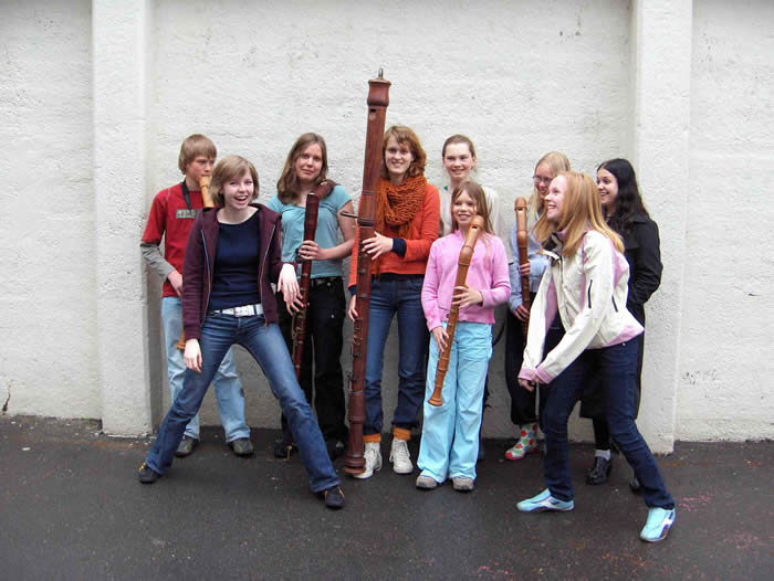 In 1998 a smaller group called the Uranienborg Quartet took part in The National Recorder Ensemble Competition in Britain. They won the first round in Coventry (in the oldest class 14-18 yr olds). In the finals in Cambridge they were awarded 3rd place. The quartet-Caroline Eidsten Dahl, Ingeborg Christophersen, Signe Christophersen and Alexandra B. Opsahl had good reason to be proud of their performance. Three of the girls that made up the quartet have continued their recorder studies to professional level. Caroline has completed her Diploma study at the Royal University College of Music in Stockholm. Alexandra has completed her B.Mus. degree at The Royal Academy in London with a 1st class honours. In 2003 she also won the prestigious Moeck Competition in London for recorder soloists. Ingeborg has been studying at the conservatoire in Esbjerg in Denmark and is now continuing her studies at Sweelinck Conservatory in Amsterdam. She won the Norwegian Youth Music Competition in 2003 and was awarded the overall award ” The Years Musician”.
