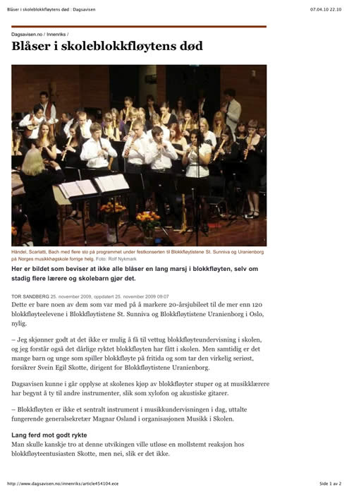 Fra DAGSAVISEN november 2009: